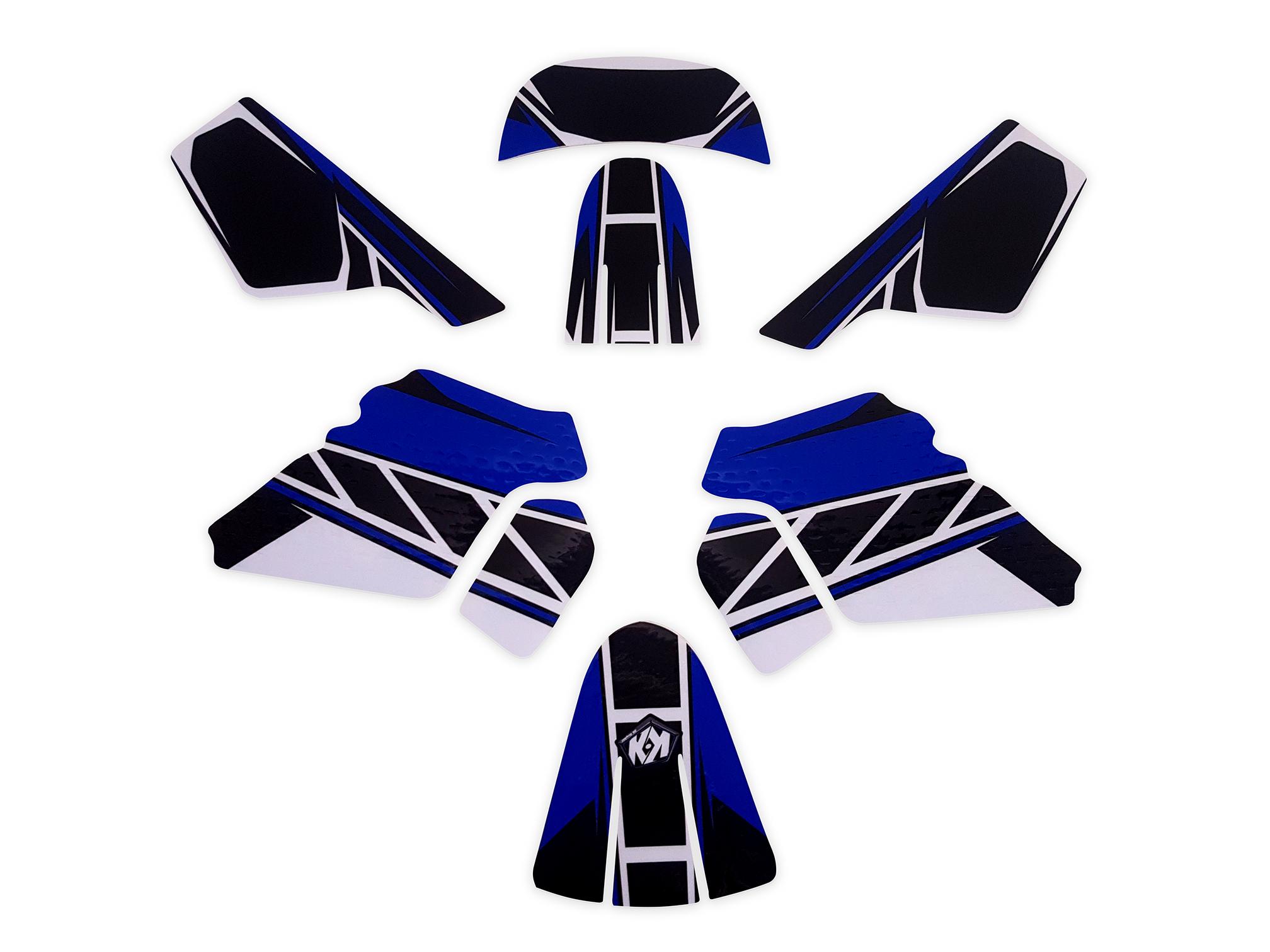 PW-STOCK vous propose ce kit déco KUTVEK Replica Bleu pour Yamaha PW 50 toutes années (autocollants réalisés sur mesure pour plastiques d'origine ou type origine Yamaha, mais montage également possible sur plastiques adaptables, plus d'informations à ce sujet ci-dessous)
